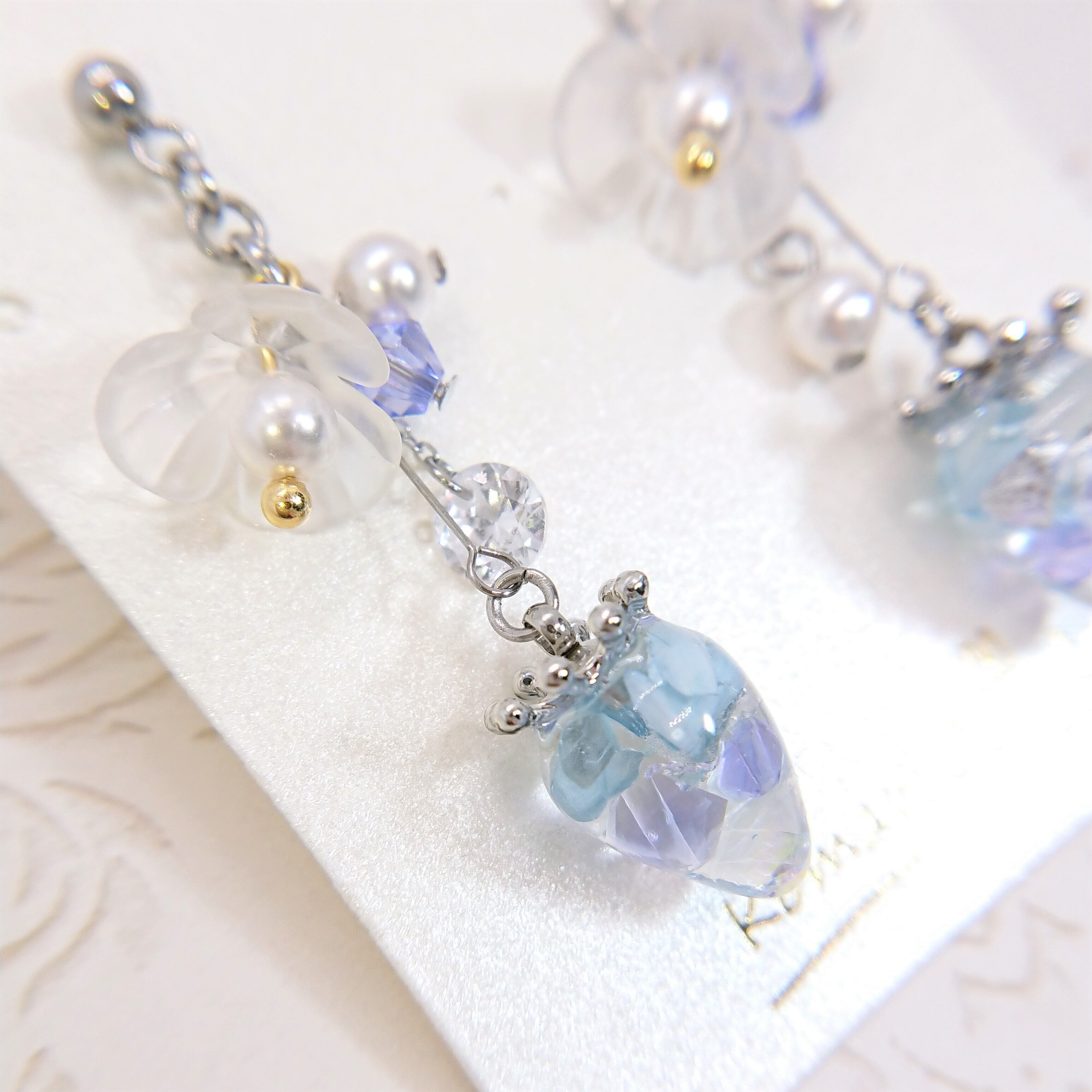 淡いブルーとパープルが優しい苺の耳飾りが登場です♡