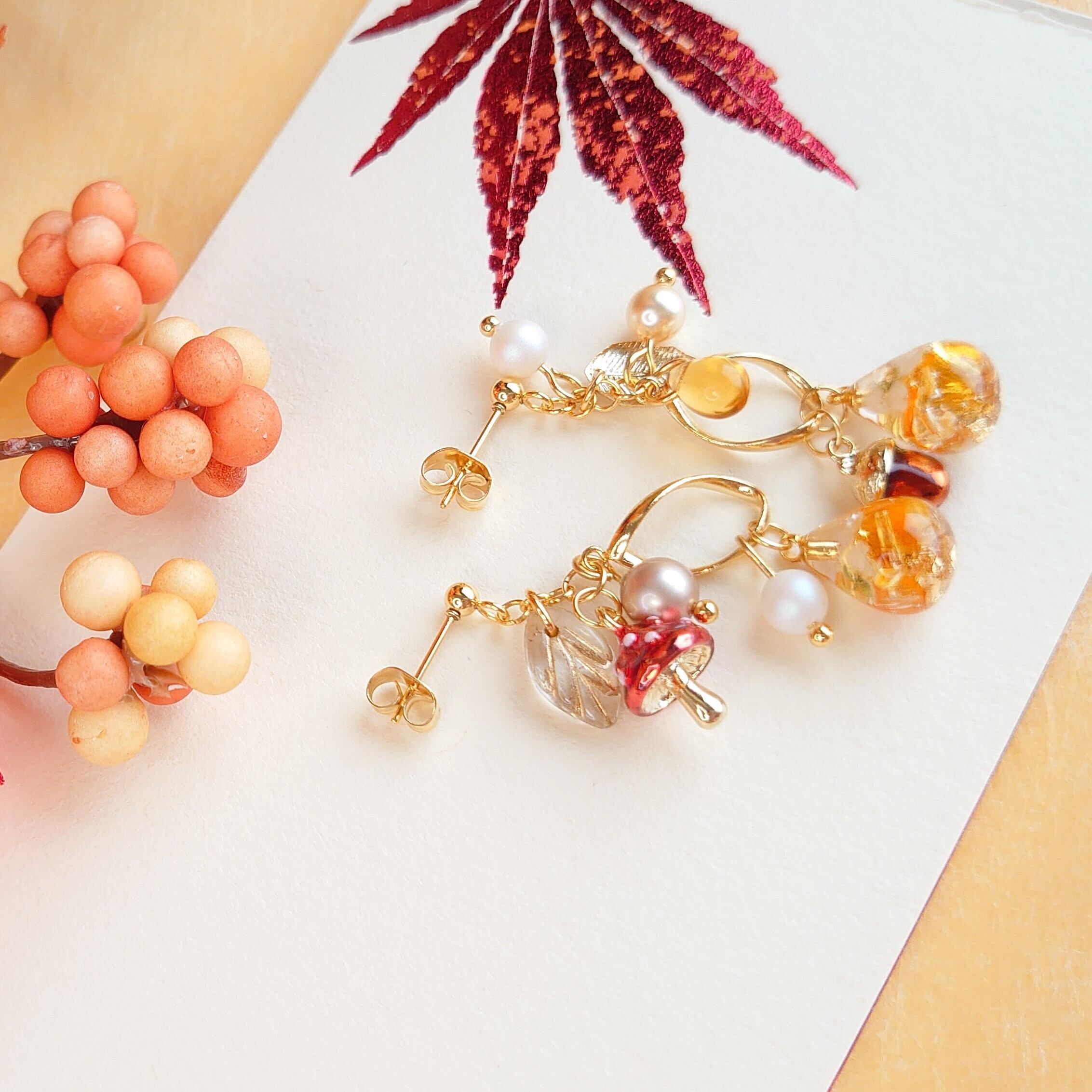 温かなオレンジに差し色の赤いキノコがワンポイント♪