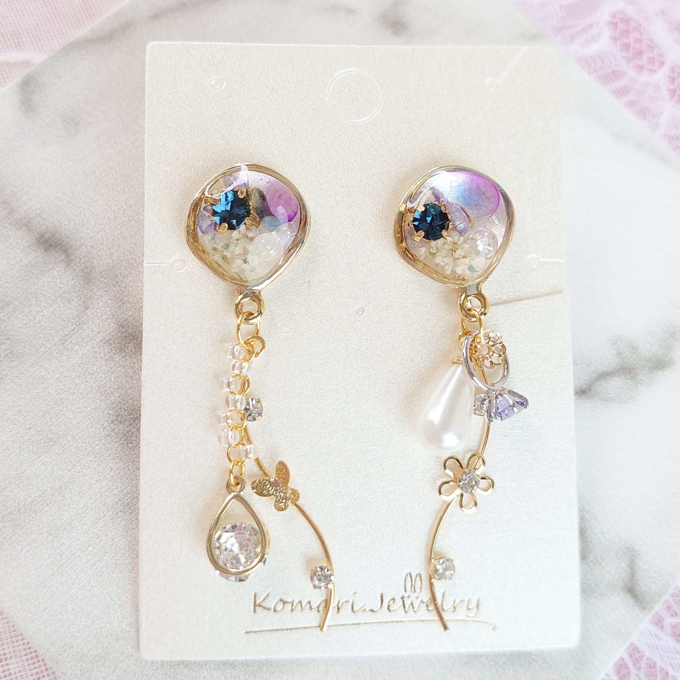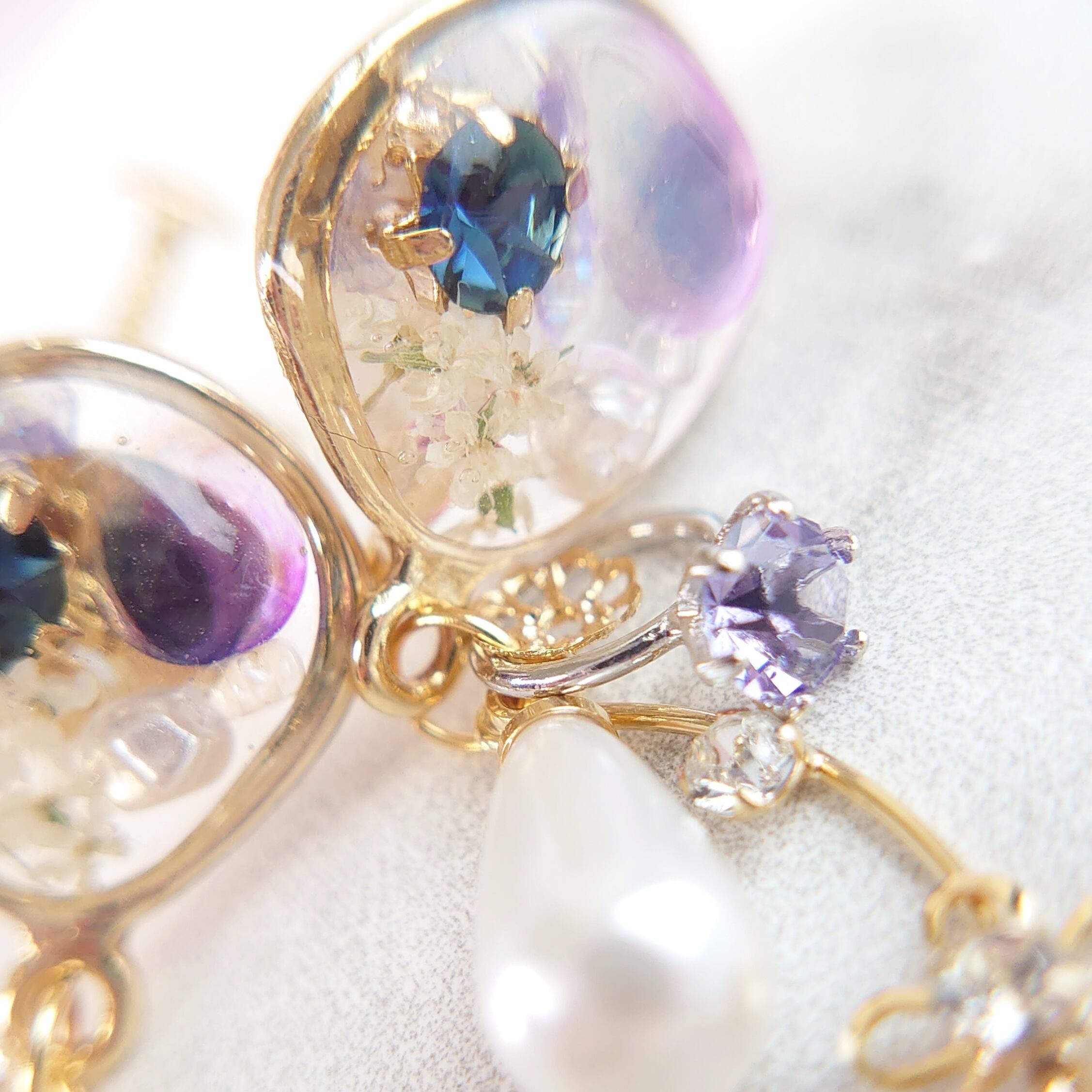 ドライフラワー、スワロフスキークリスタル、プラスチックパール、レジン