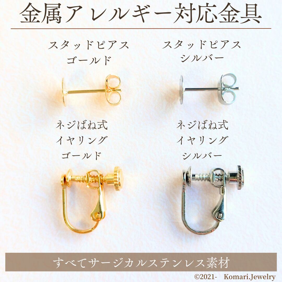 スタッド(ストレート)ピアス、またはネジバネ式イヤリングのみ。