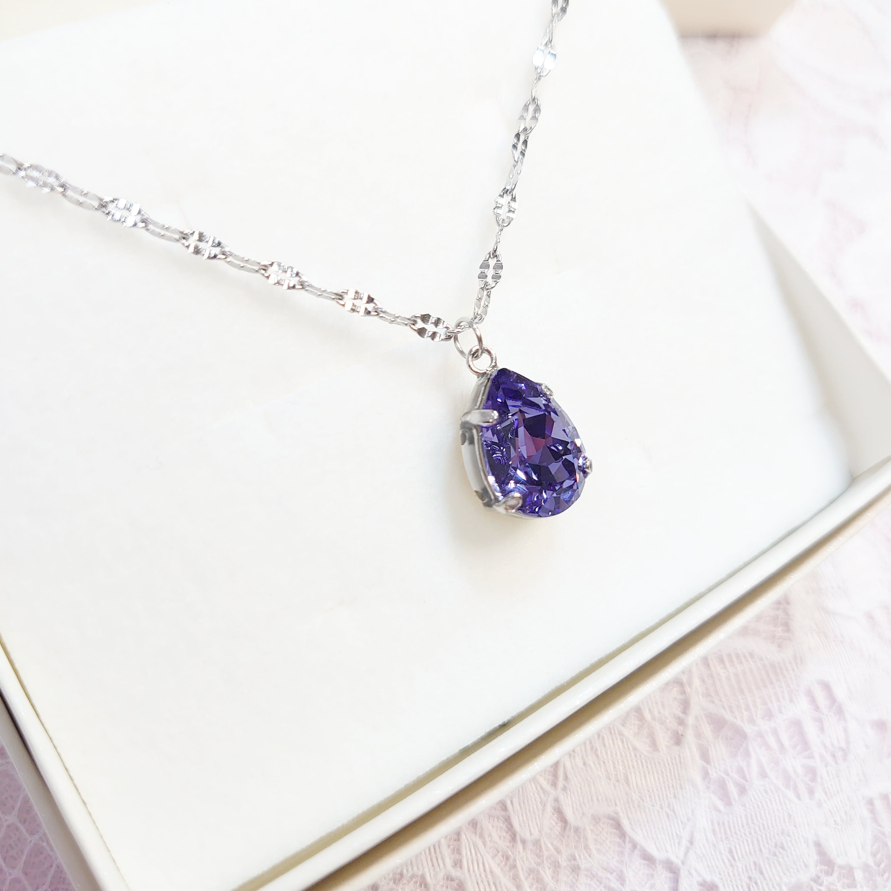 美しいタンザナイトの輝きが魅力のスワロフスキークリスタルを使用。