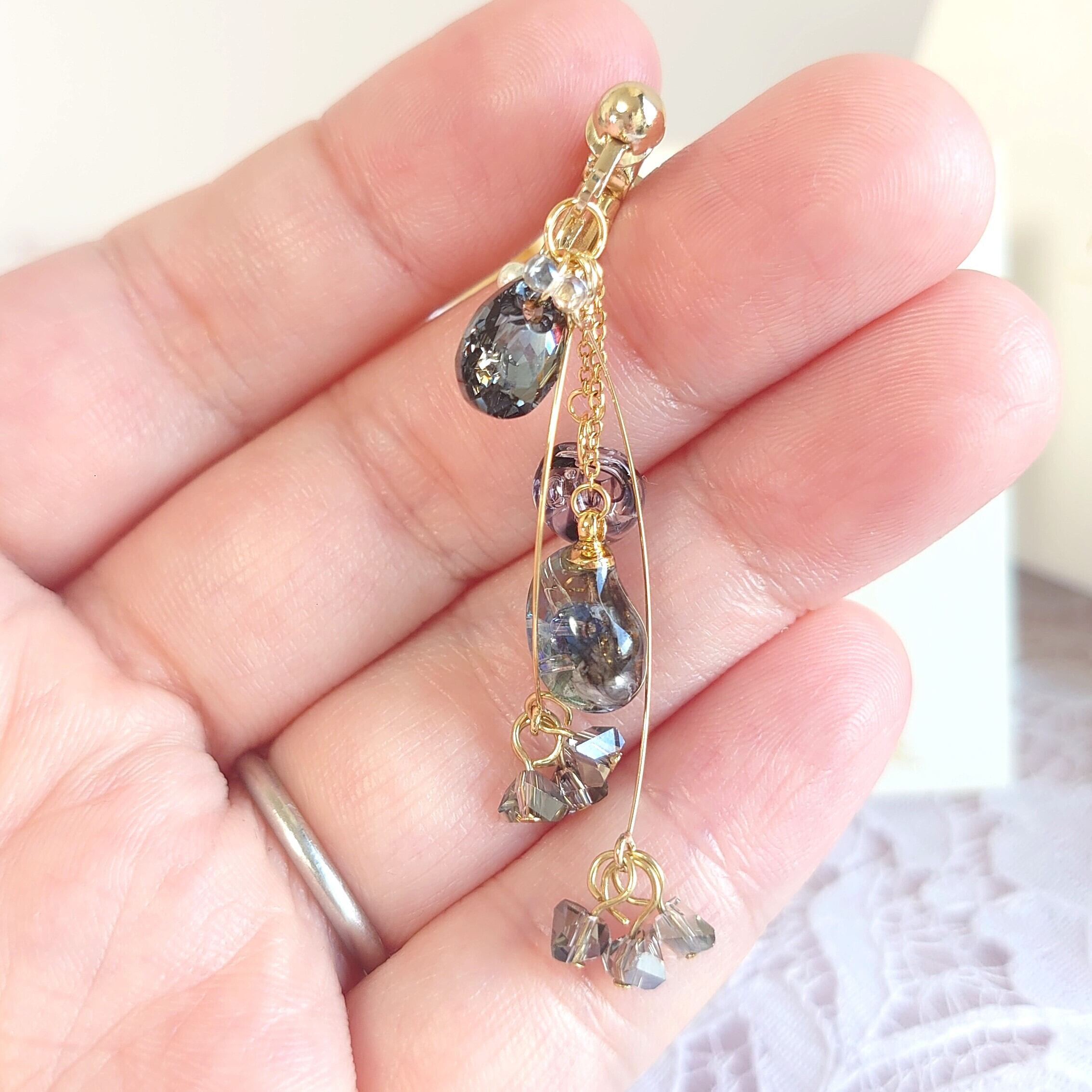 華やかなエレガンスを演出する耳飾り、「来福しずくの耳飾り:マーブルブラック」