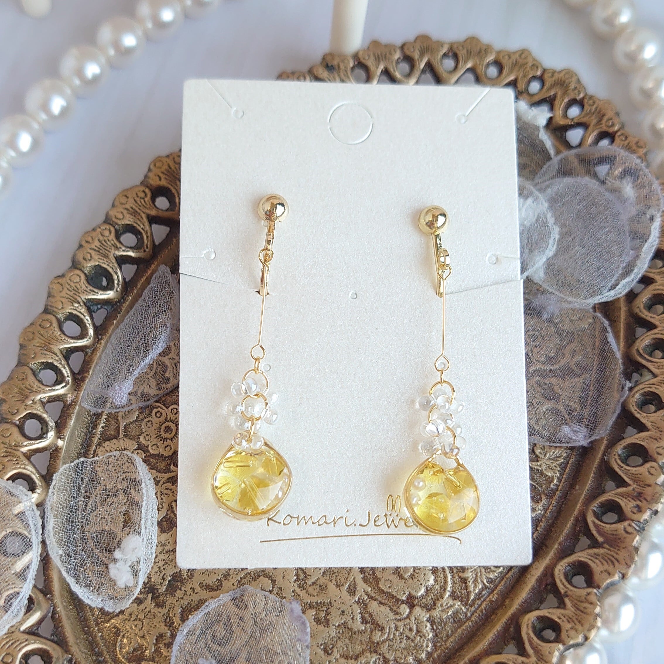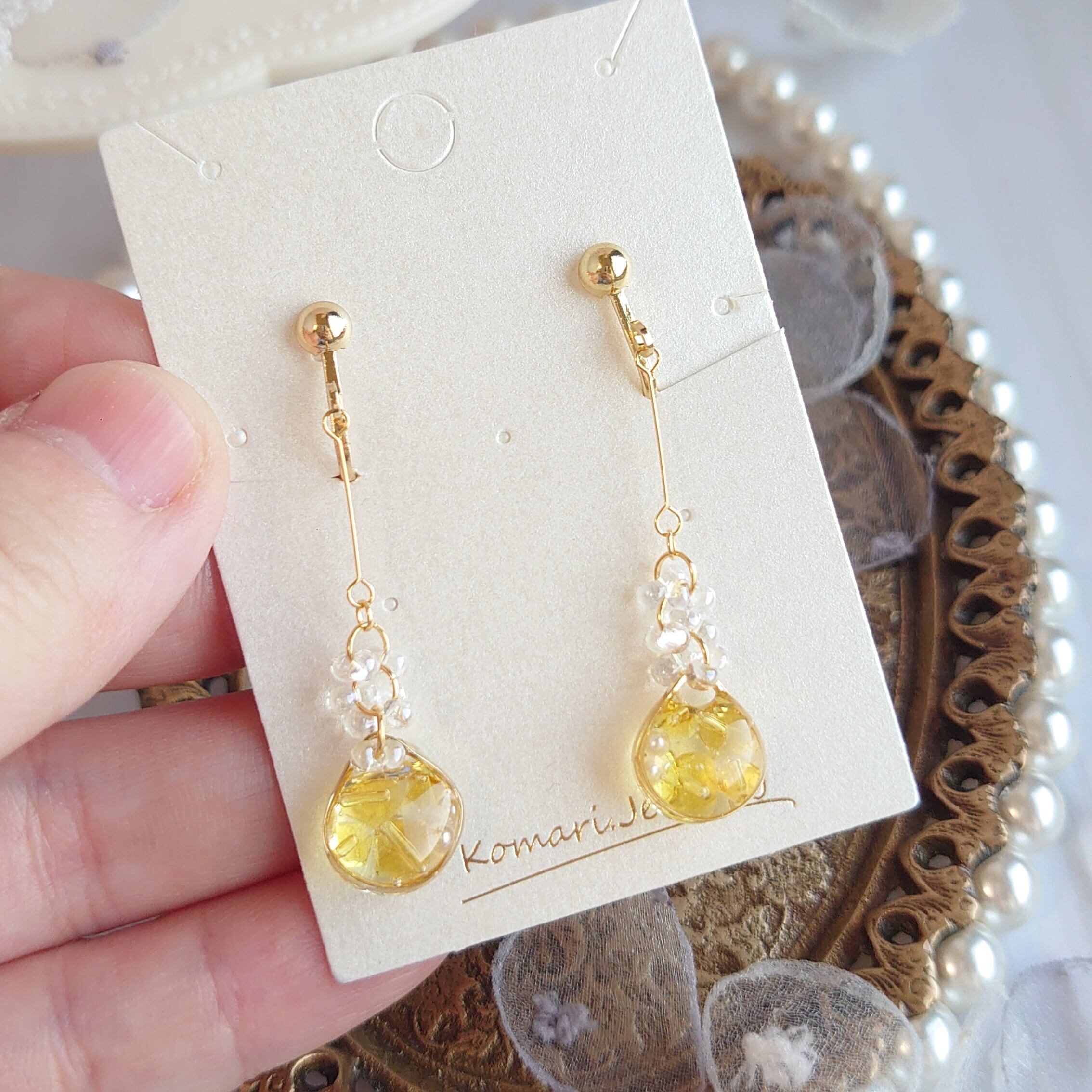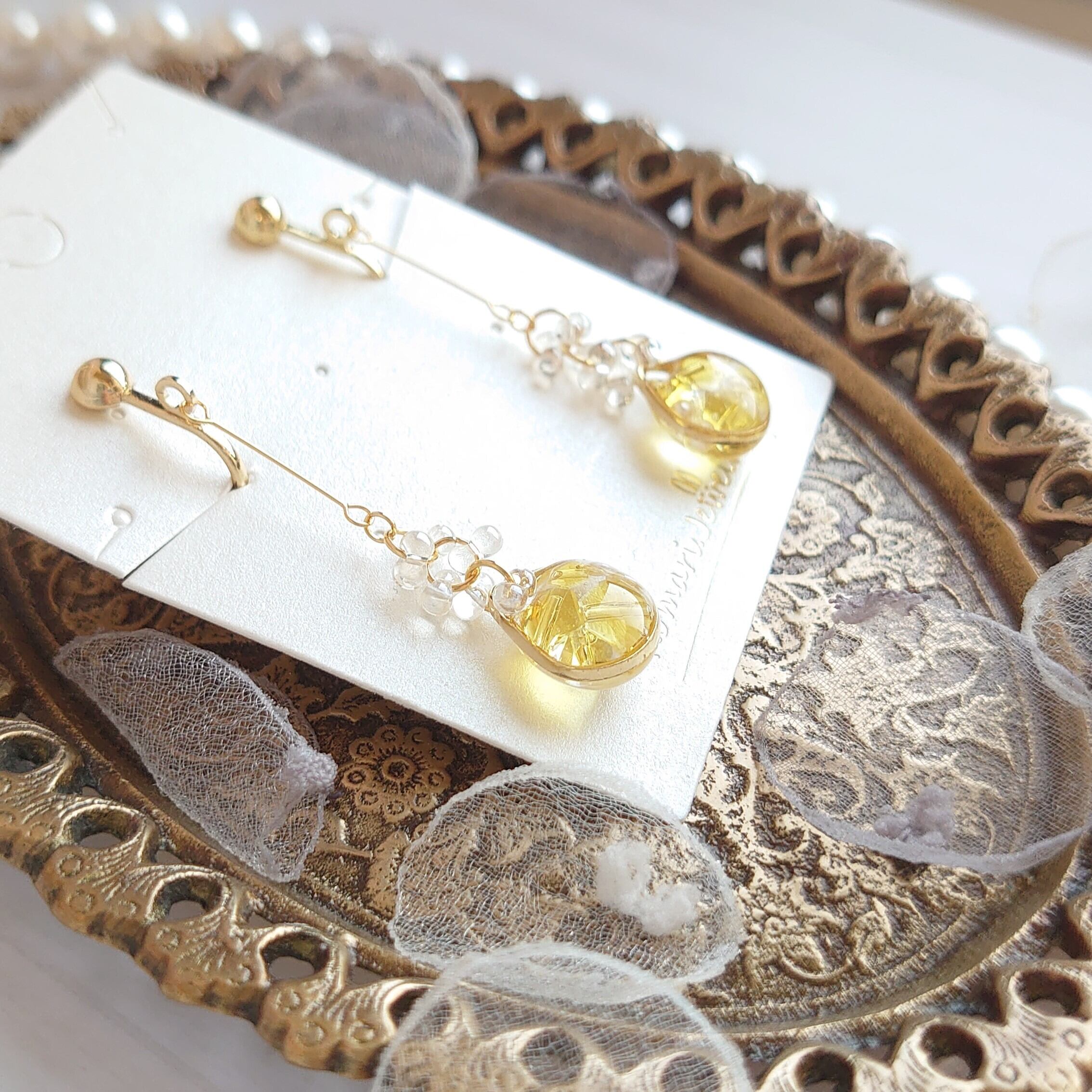 【11月 誕生石】シトリン ピアス イヤリング イエロー プレゼント 小粒 シンプル 揺れる 金属アレルギー対応