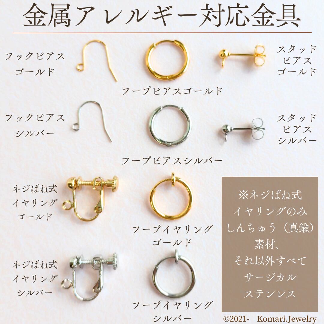 それ以外ピアス金具含め金属部分すべてサージカルステンレス316