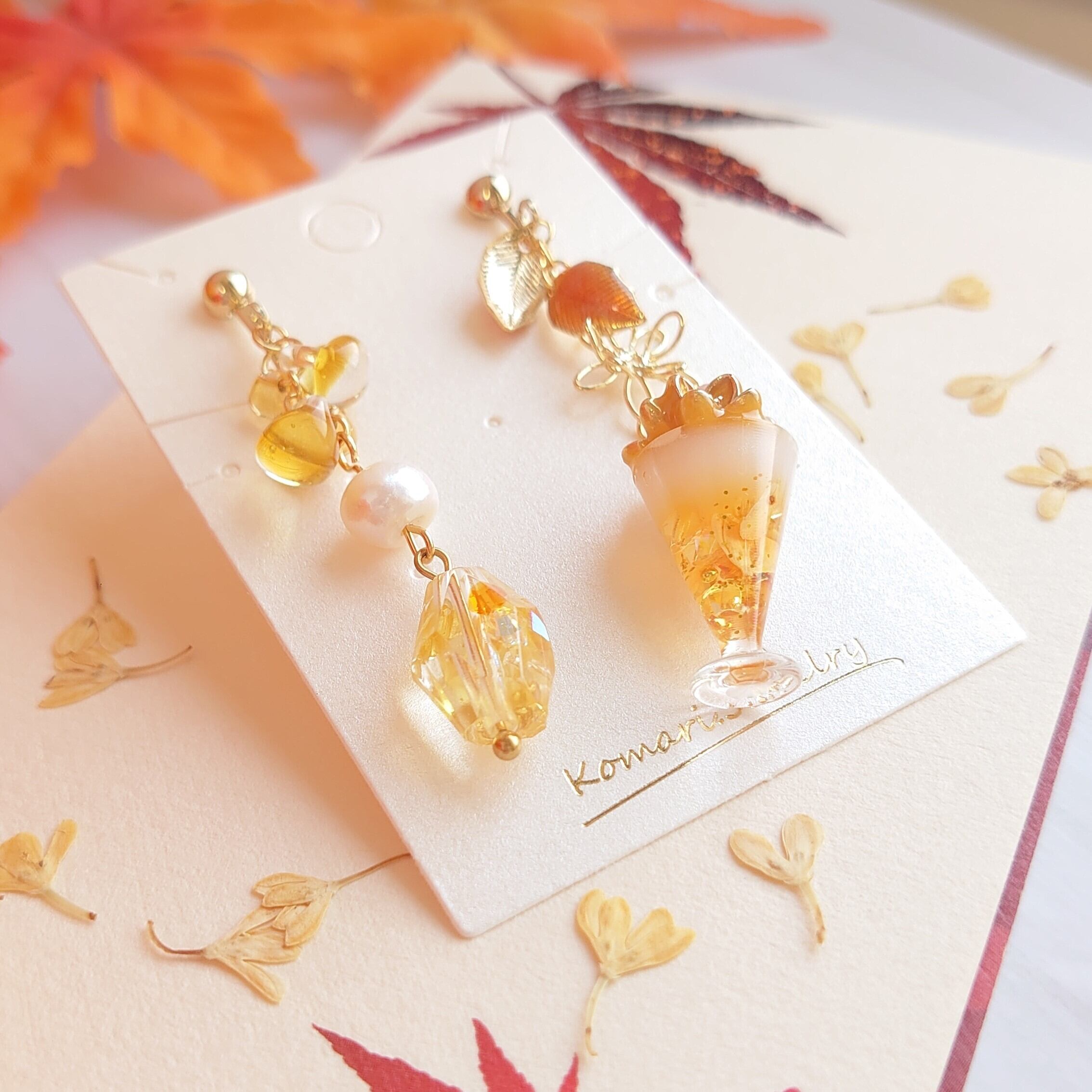 金木犀 アクセサリー クリームソーダ 揺れる ピアス イヤリング 金属アレルギー対応